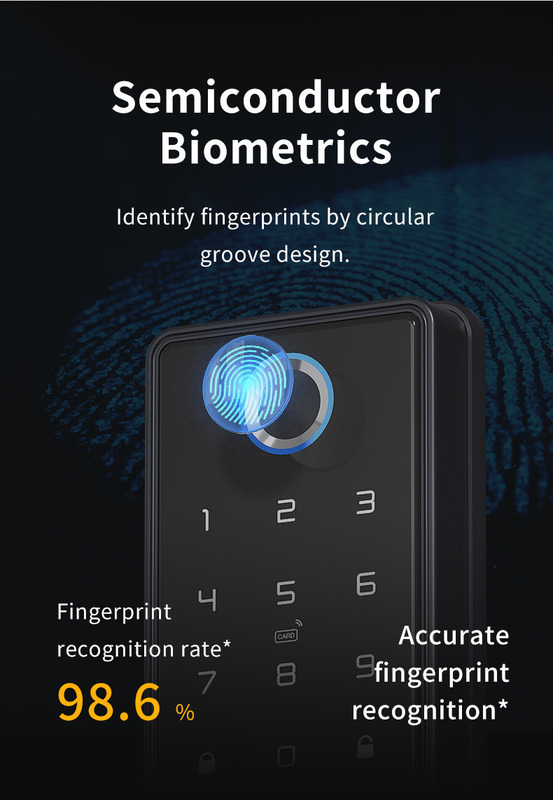 | Opening Methods | TTlock app/Tuya app + Fingerprint + Password + Key + Card |