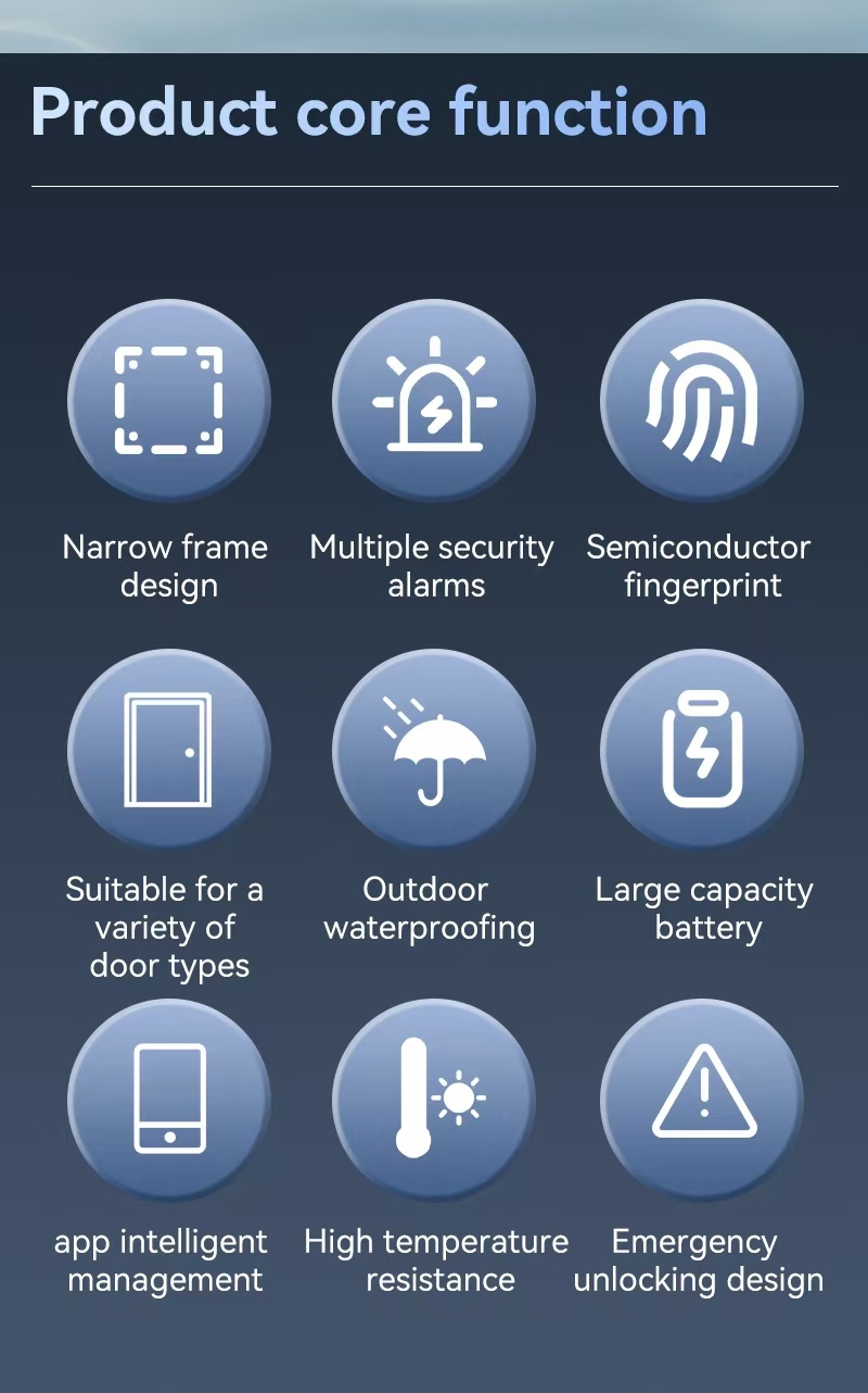 Nâng cấp an ninh và sự tiện lợi cho ngôi nhà của bạn với Khóa cửa kỹ thuật số IP65 Chống nước của chúng tôi, được tích hợp với hệ sinh thái thông minh Tuya và TTlock. Khóa thông minh tất cả trong một này kết hợp khả năng bảo vệ mạnh mẽ, các phương pháp mở khóa đa dạng và khả năng kết nối thông minh, lý tưởng cho các ngôi nhà, văn phòng hiện đại và các tình huống bán ngoài trời như biệt thự. Được làm bằng nhôm anodized chất lượng cao, nó tự hào có thiết kế đẹp mắt và hiệu suất đáng tin cậy trong môi trường khắc nghiệt.