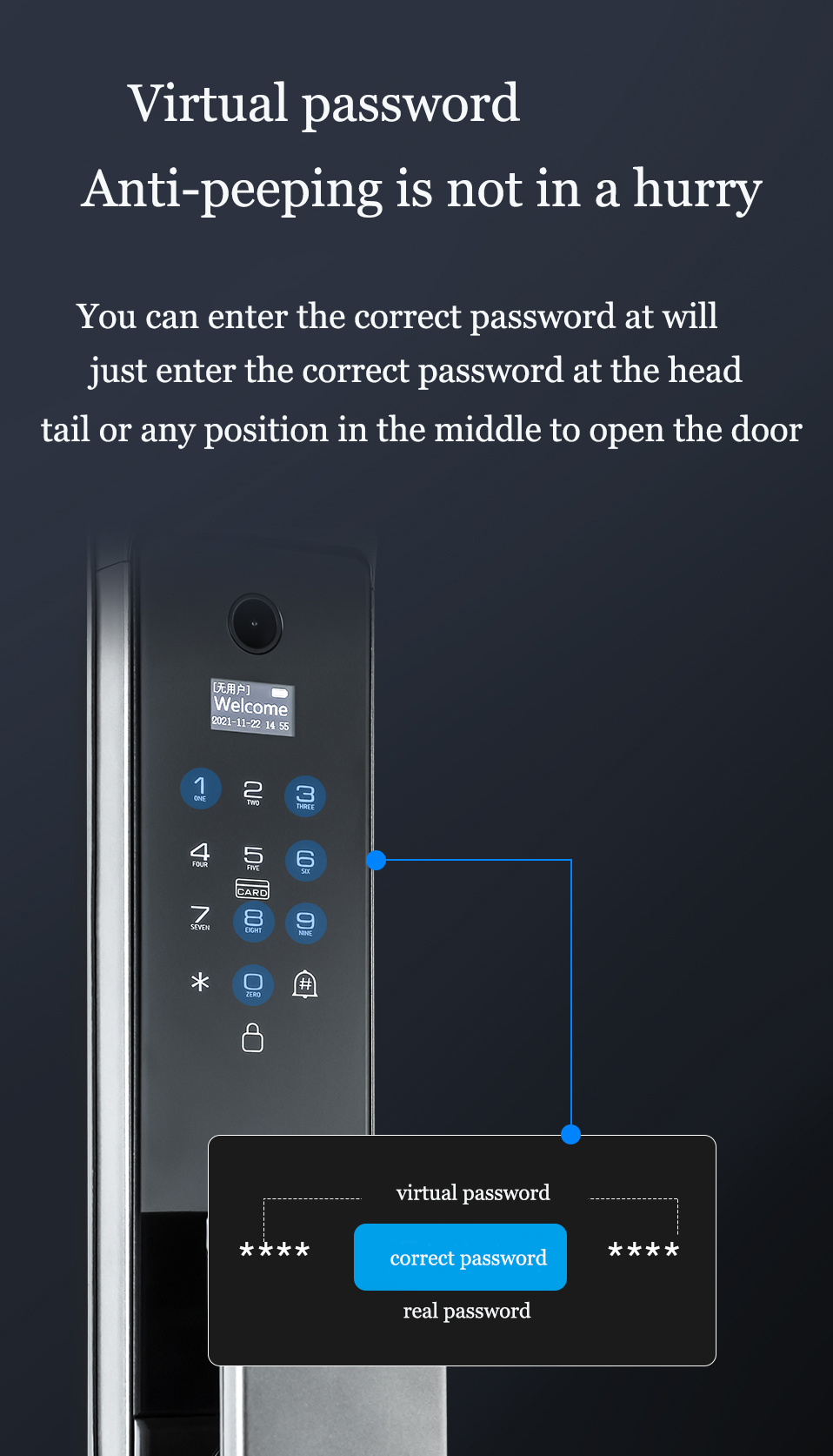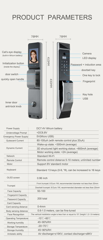 | Làm nổi bật: | Khóa cửa thông minh Tuya Wifi,Mã vân tay khóa thông minh,khóa cửa máy ảnh ngắm |